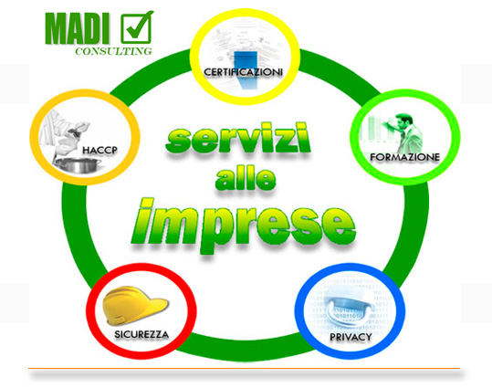 MADI Consulting opera nell’ambito della consulenza alle aziende coordinando e realizzando attività di Formazione e orientamento al lavoro nonché certificazioni per i settori Qualità, Ambiente, Privacy, Sicurezza, SOA, HACCP, ISO 22000 e OHSAS 18000.