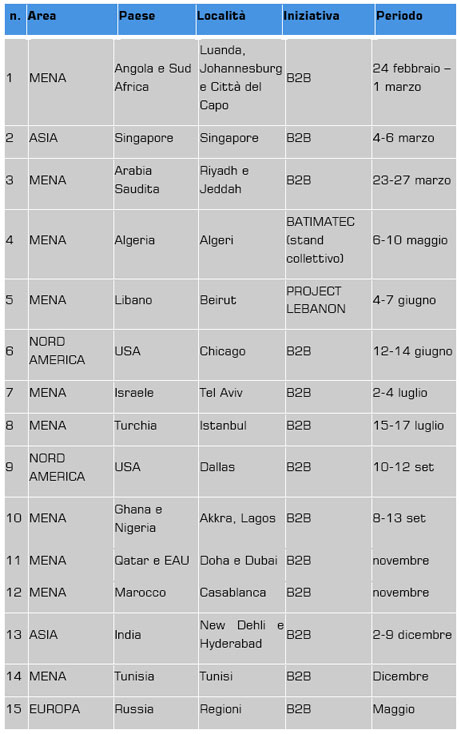 • L’Area MENA è in grande ripresa: Qatar e Arabia Saudita +10%. In espansione anche Angola, Ghana e Africa