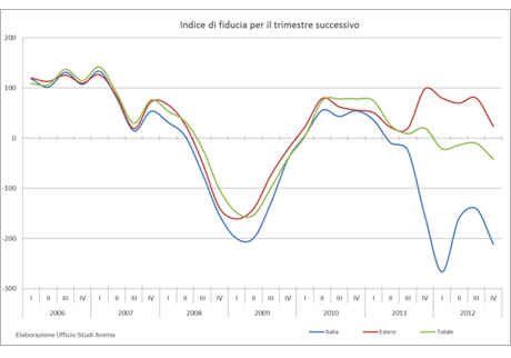 L’indagine trimestrale di ANIMA del quarto trimestre 2012 evidenzia un andamento tendente al negativo per quanto riguarda la fiducia degli imprenditori