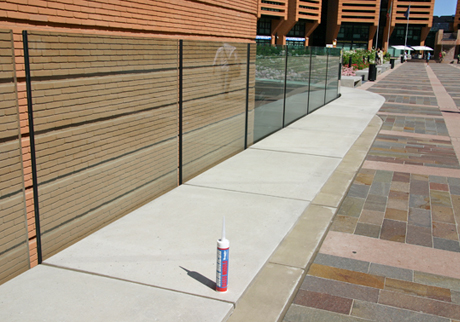 Sitol Silicon Basso Modulo Grigio B2 per la realizzazione dei giunti di accostamento degli elementi prefabbricati in cls che costituiscono le panchine della piazza e le copertine dei parapetti.
