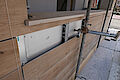 Interessanti alcuni dettagli esecutivi messi a punto nella gestione dei collegamenti e nella cura dei particolari, come il lamierino sagomato ad “L” fissato al correntino di Isotec Parete. Grazie alla sua forma, esso svolge una duplice funzione: da un lato, funge da battuta alla rasatura del cappotto tradizionale; dall’altro, nasconde la testa della doga in grès e costituisce un piccolo scuretto. In questo modo, le due diverse finiture di facciata risultano complanari.