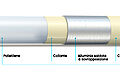 Uni Pipe PLUS è costituito da un tubo in alluminio senza saldatura che non solo impedisce l'ingresso di ossigeno ma compensa la dilatazione lineare causata dalle variazioni di temperatura e mantiene stabili curvature e pieghe. Per raggiungere questo obiettivo, lo spessore dell'alluminio è stato regolato in modo ottimale. Sia l'interno che l'esterno del tubo sono stati dotati di uno strato di polietilene resistente alle alte temperature (conforme alla norma DIN 16833). I vari strati sono uniti in modo permanente mediante uno speciale collante.