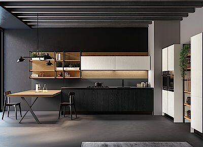 È una cucina classica in stile tradizionale Gioiosa di Arredo3 ed è anche attenta alla praticità richiesta dalla vita contemporanea. Le sue ante con telaioin massello di frassino e cornice in rilievo nascondono cestoni e cassetti attrezzati di tutto punto. Puoi sceglierla nelle finiture neutre o calde che ricordano il sapore di un tempo oppure nei tanti laccati opachi colorati disponibili per una versione più attuale.