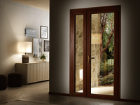 Su richiesta, per un ottimale comfort, è possibile avere la soglia in alluminio a taglio termico con gocciolatoio e incontro ribassato. In alternativa, il parafreddo a ghigliottina.