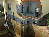 Consolidamento basato sull'iniezione di resine a lenta espansione a densità differenziata direttamente nel terreno al di sotto della fondazione.