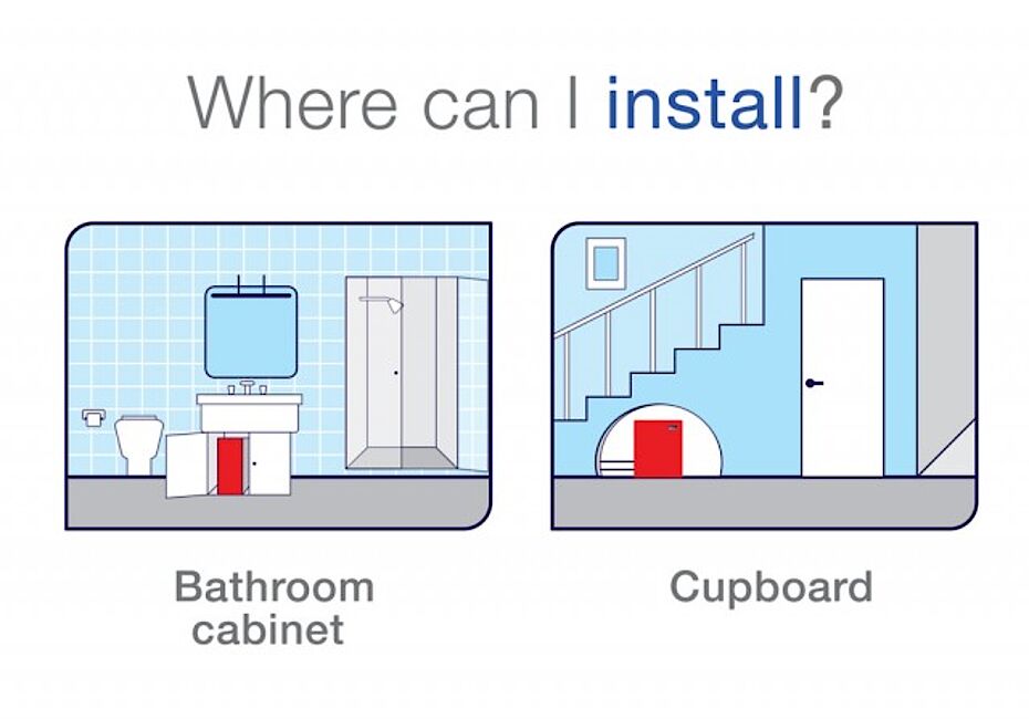 Il condizionatore ad acqua senza unità esterna si installa facilmente dentro un mobile sotto il lavello, in bagno o in ogni piccolo spazio.